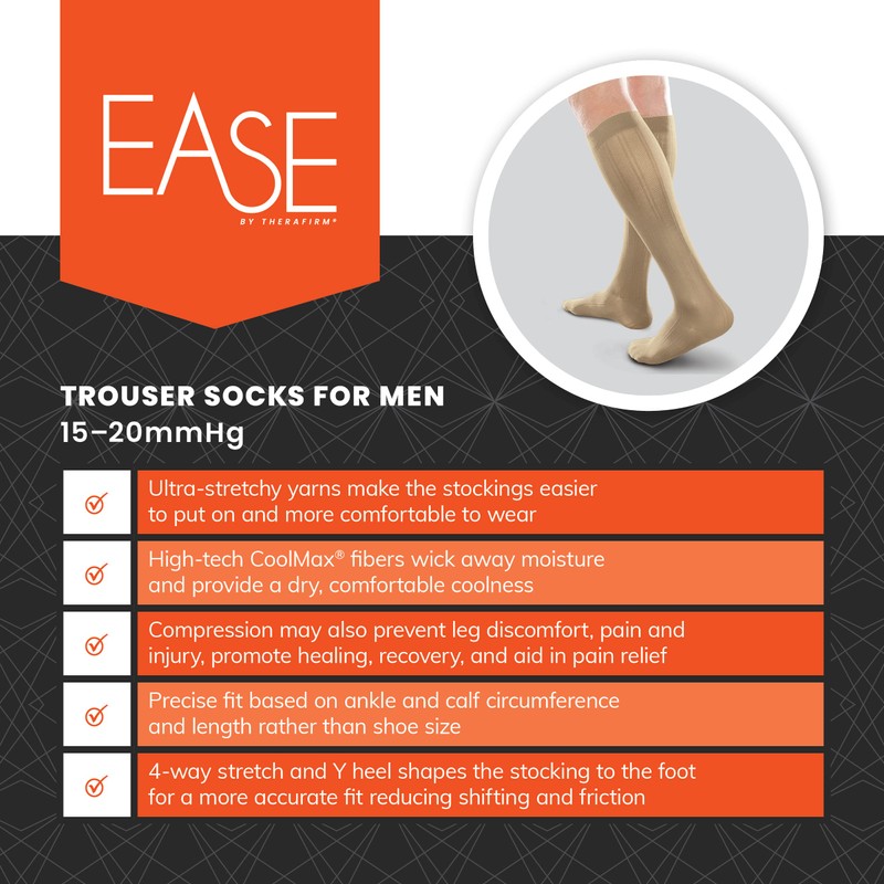Ease Opaque Men's Trouser Socks with Mild (15-20mmHg) Compression (Navy, l)