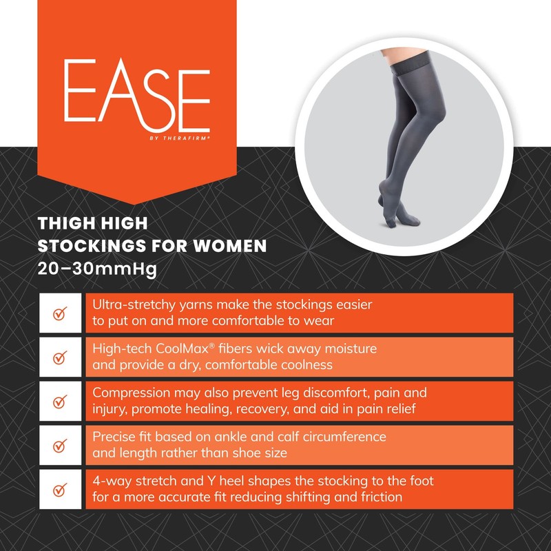 Ease Opaque Women's Support Thigh High Stockings - 30-40mmHg Firm Compression Nylons (Black, Medium Long)