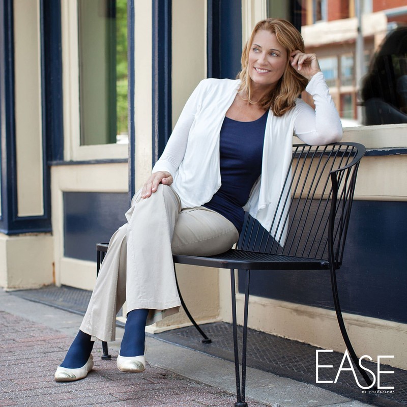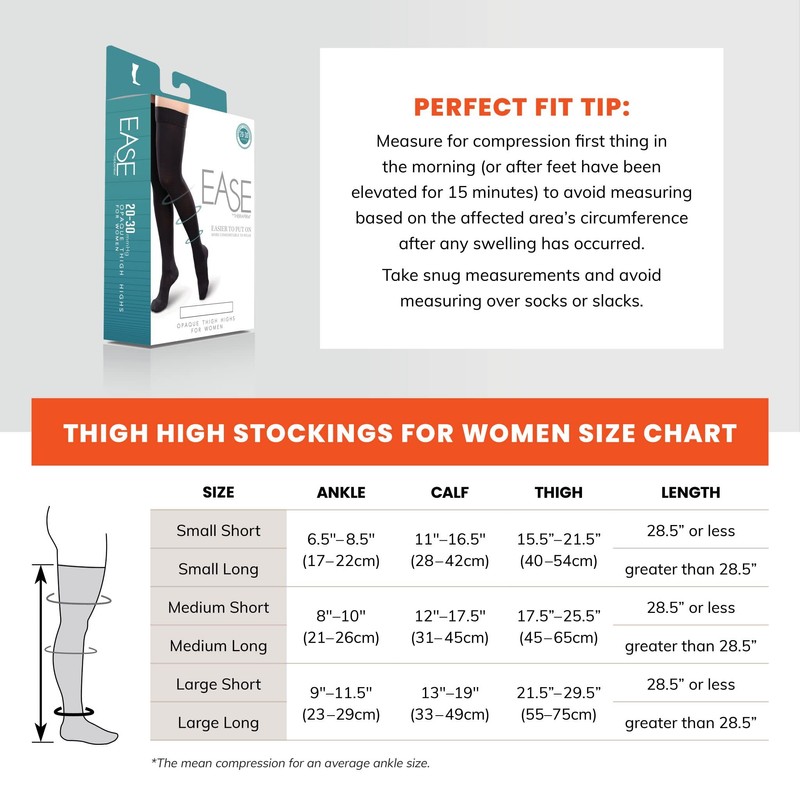 Ease Opaque Women's Support Thigh High Stockings - 30-40mmHg Firm Compression Nylons (Sand, Medium Long)