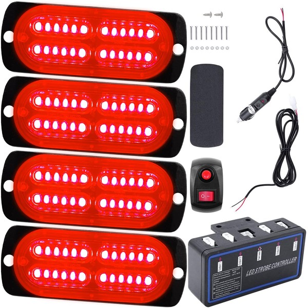 • 【4PCS Super Bright Strobe Lights】 Include 4 Super Bright Sync Feature 24-LED Strobe light and Main Control Box for Free Wiring Installation. With high visibility in daylight, midnight, raining or fog days. Improve the drive security and avoid accidents.