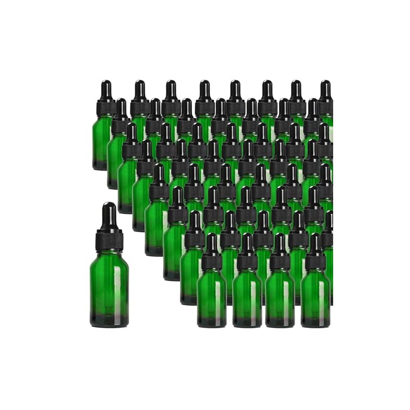 Easeen 48 Pack 1/2oz Green Glass Dropper Bottles, Eye Dropper Bottles with Glass Droppers for Essential Oils, Perfumes(15ml, Green)