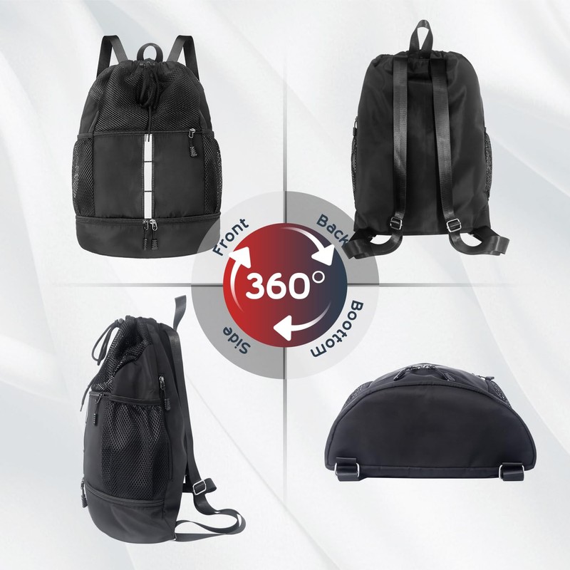 - Dry/Wet Separation & Shoe Compartment: The zipper wet pocket inside this drawstring bag is perfect for storing toiletries, swim equipment and beach supplies. No need to worry about getting your other personal items damp. This gym backpack is equipped with a dedicated room for shoes, which allows you to store dirty shoes or clothes separately from clean essentials.