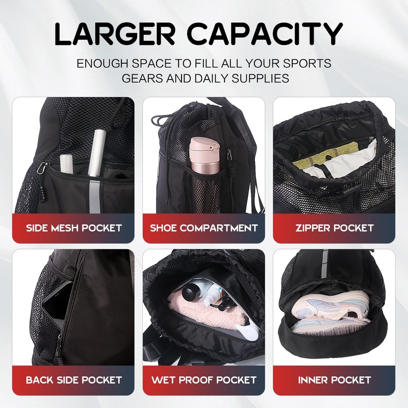 - Spacious & 30 L Large Capacity: Measuring 18.5 x 13.4 inches with a 30L capacity, this drawstring backpack offers ample space for all your gym, swim, or outdoor essentials. The gym bag can easily hold a basketball, a soccer or a volleyball. 8 pockets in total, keeping your belongings easily accessible and neatly organized