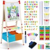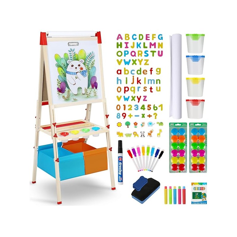 Easel for Kids,3 in 1 Adjustable Kids Art Drawing Easel Set,130+ Art Supplies,Wooden Double Sided Magnetic Chalkboard and White Board with Paper Roll,Painting for Aged 2-4,5-7,8-12