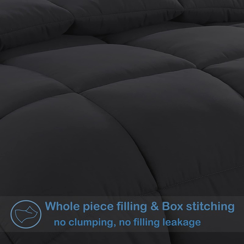 EASELAND All Season Oversized Queen Soft Quilted Down Alternative Comforter Reversible Duvet Insert with Corner Tabs,Winter Summer Warm Fluffy,Black,98x98 inches