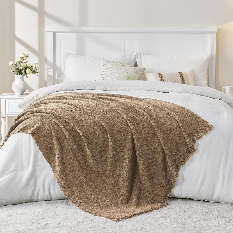 EASEON Throw Blanket for Couch-Soft Tan Boho Throw Blanket,Cozy Knit Throw Blankets,Small Knitted Lightweight Blanket&Throw for Fall,Bed,Chair,Sofa,Home Decor,Gift (Tan/Khaki, 60 * 80 inches)