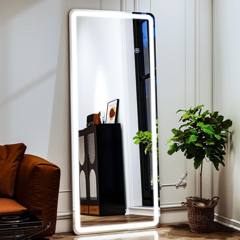 - SAFETY DESIGN: Designed with rounded corners to prevent accidental bumps, especially for families with children. This LED Floor Mirror is not only aesthetically pleasing, but also provides extra safety for your family