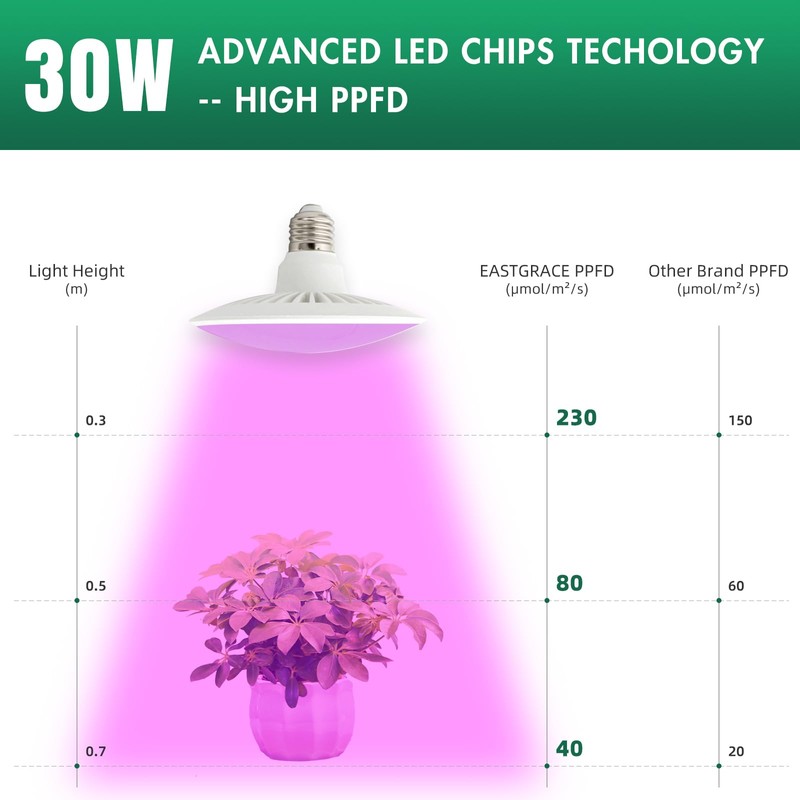 - Versatile Use: East grace plant bulb is perfect for indoor garden. Indoor natural light is weak and indoor plant grow lights mimic the sun spectrum, making them ideal for growing plants such as flowers, vegetables and hydroponic plants