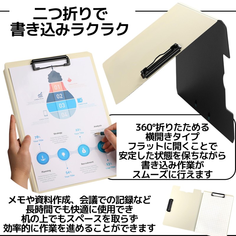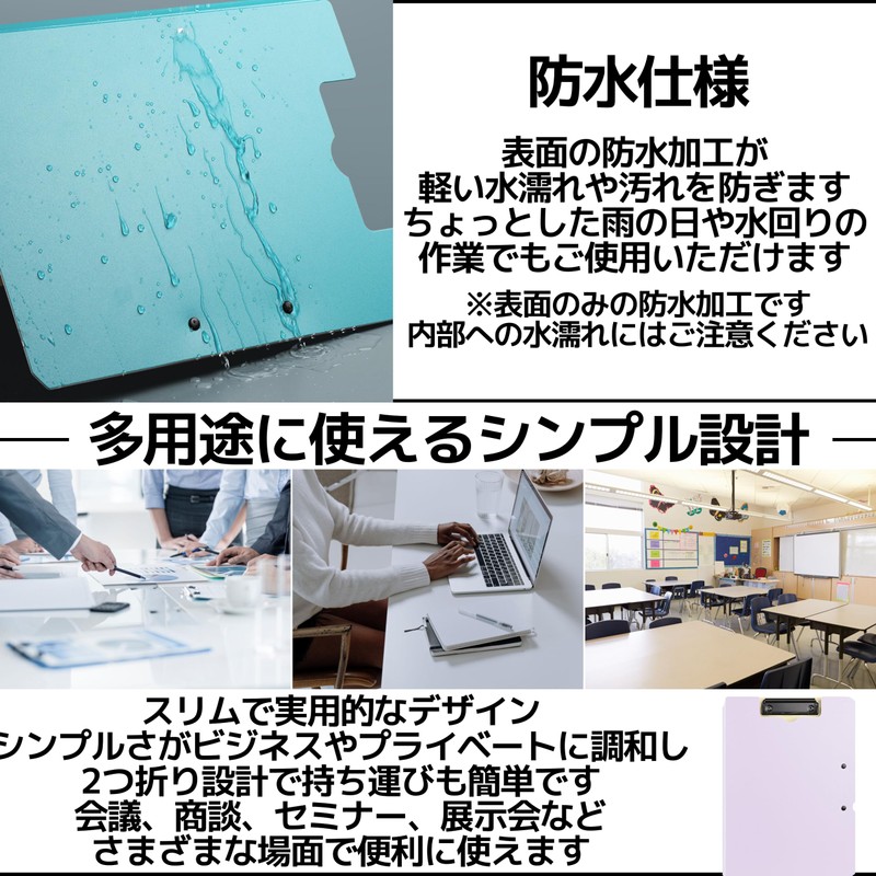 - 【Simple Design for Versatile】Slim and practical design to organize A4 and A3 size documents. The simplicity of this product is cut out of unnecessary decor and pursues only the necessary functions and is harmonious in both business and private settings. The bi-fold design makes it easy to carry and keep your bag or desk neat This file board is useful in a variety of situations, such as conferences, negotiations, seminars, and exhibitions