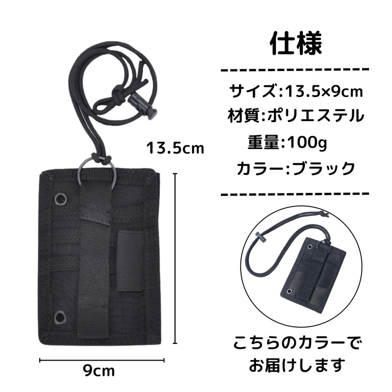 • Specifications: Size: 5.3 x 3.5 inches (13.5 x 9 cm); Material: Polyester; Weight: 3.5 oz (100 g); Color: Black