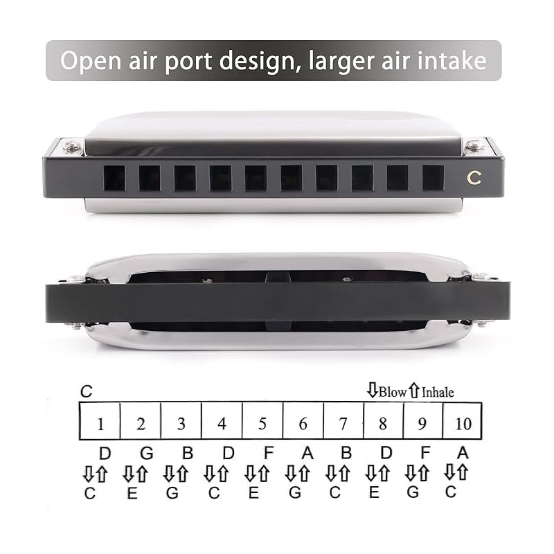 - The harmonica has 10 holes and 1mm thick bronze reeds, making it easier to achieve higher pitch and rich timbre, with soft and pleasant sound quality.