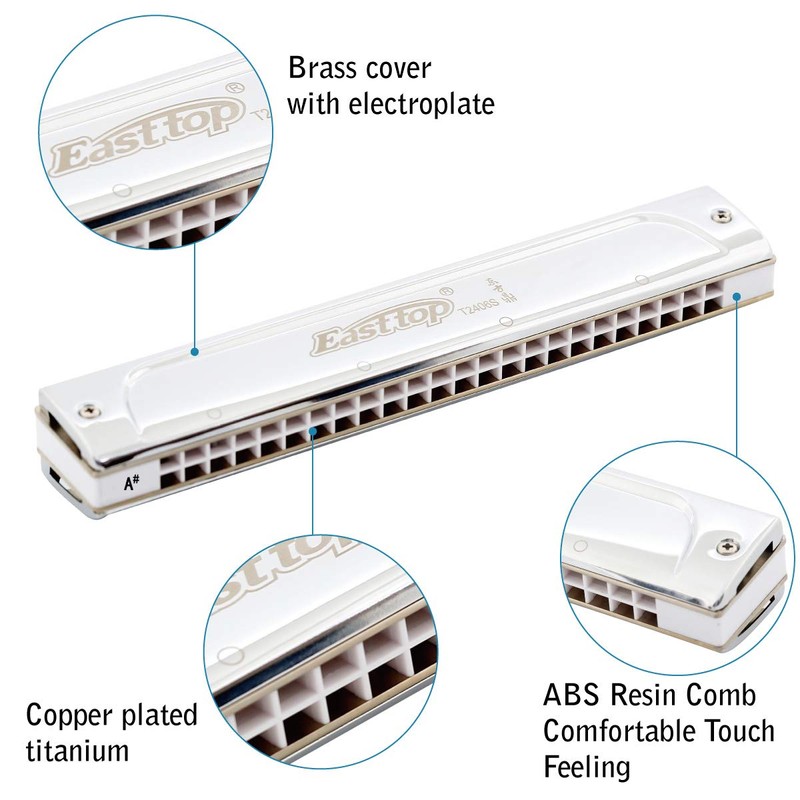 - 【Package includes】 - 1x 24 Hole Tremolo Harmonica key of A# ; 1x cleaning cloth. We are the harmonica manufacturer of the East top brand.Backed Up with East top 30 Days Unconditional Money Back . You can rest assured to buy our products.