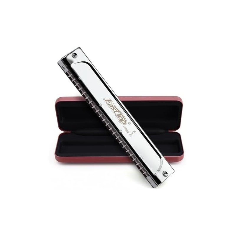 East top 24 Holes Professional Tremolo Harmonica Key of Eb, T2406S Harmonica For Adults, Professional Band Player and Students