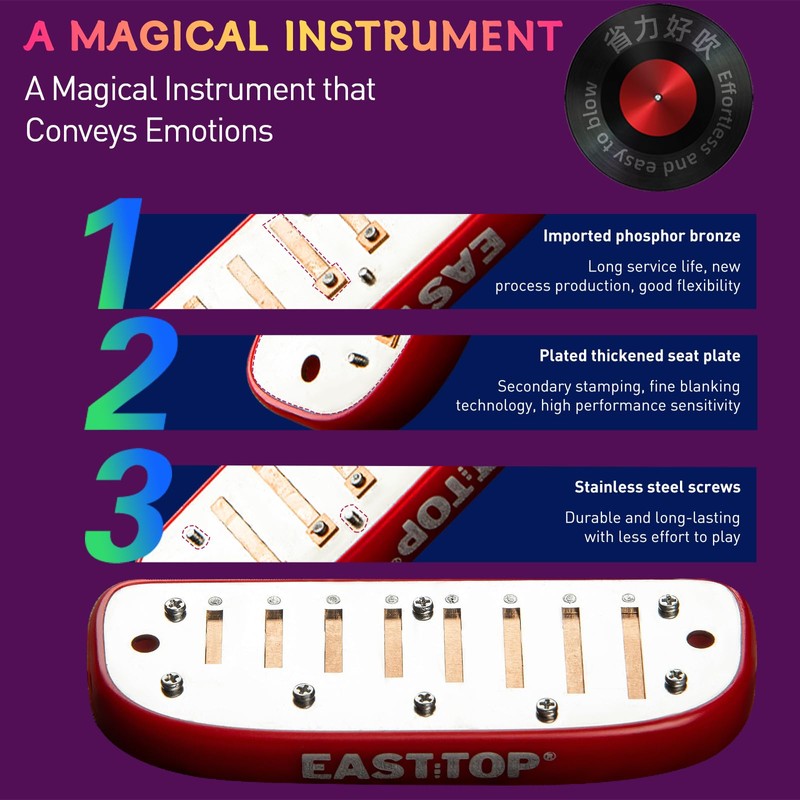 East top,8 Hole Blues Harmonica, C Key Diatonic Blues Harp Mouth Organ Harmonica For Adults, Beginners, Professionals and Students, as a Gift, RED