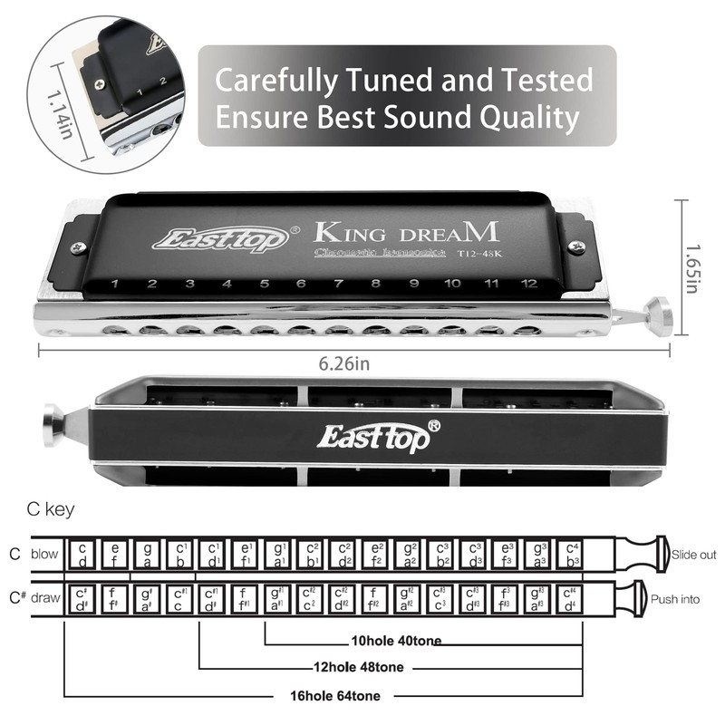 East top Chromatic Harmonica in C, 12 Holes 48 Tones Chromatic Mouth Organ harmonica for Adults, Professionals and Students (48K)