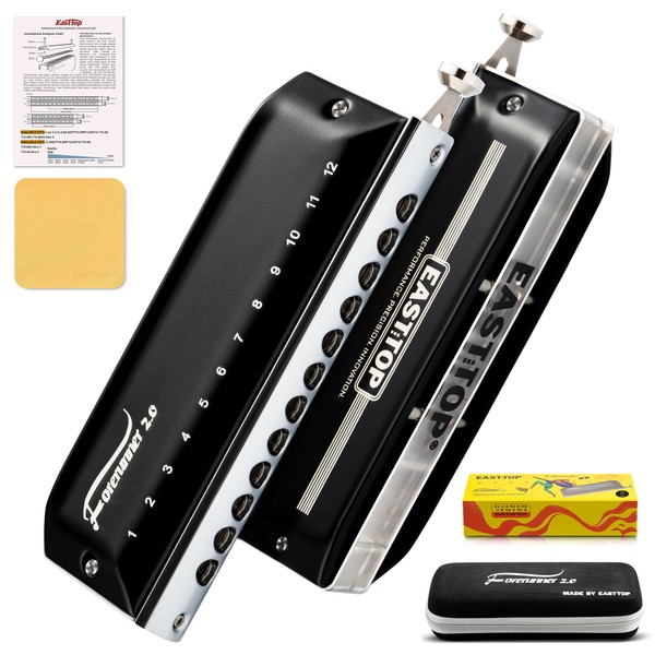EAST TOP Updated FORERUNNER 2.0 without valves Chromatic Harmonica 12-Hole 48 Tones G Key Chromatic Mouth Organ Harmonica for Adults,Beginners and Students