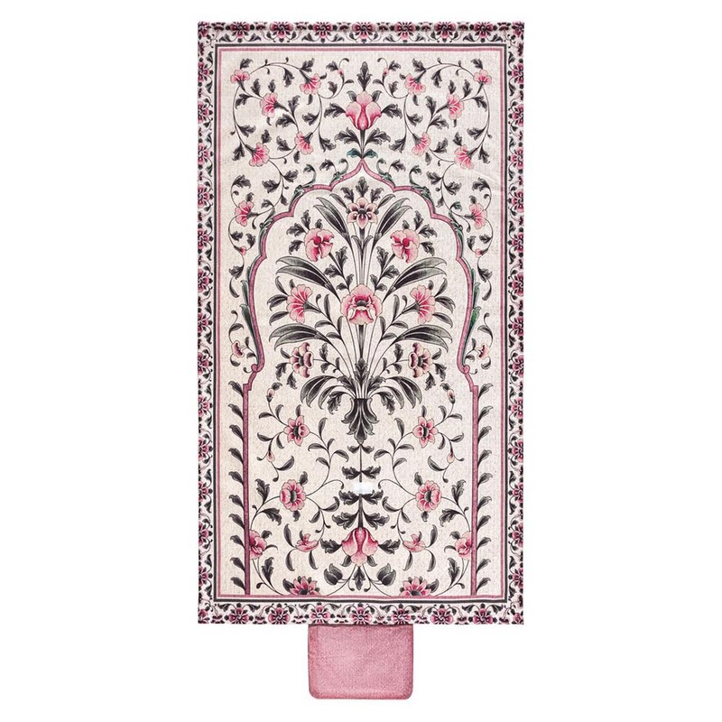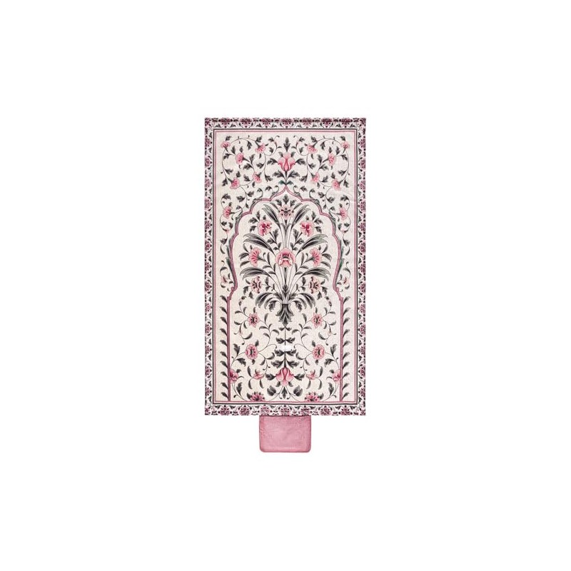 East West Souk Portable Sejadah Prayer Mat – Velvet, Linen, and Chenille with Compact Storage (Rose Blooming Damask)
