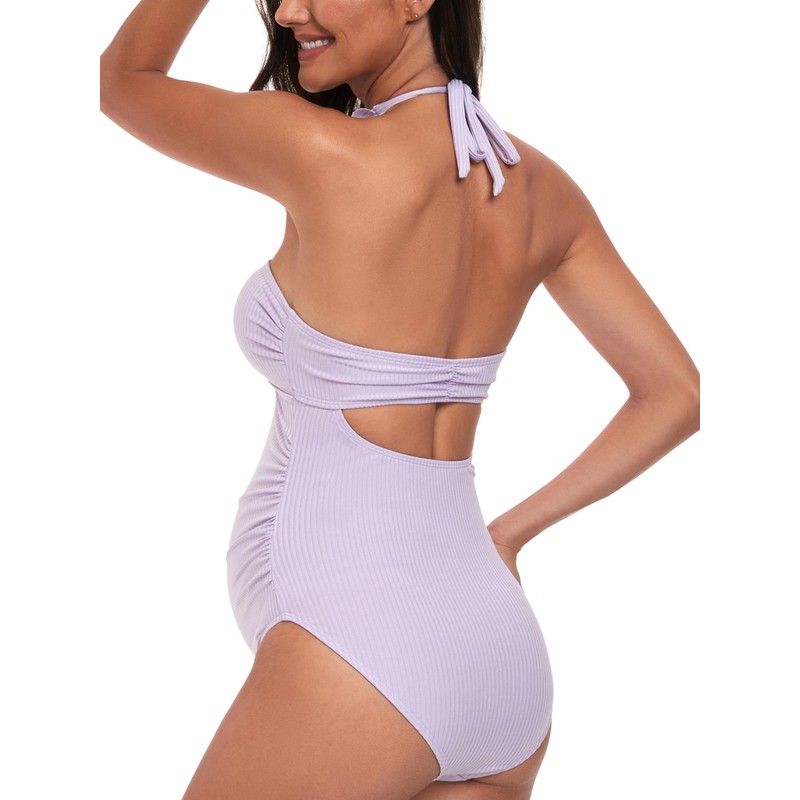 EastElegant Maternity Ruffle Ribbed Cutout One Piece Swimwear Square Ring Linked Pregnancy Bathing Suit, Purple, XX-Large