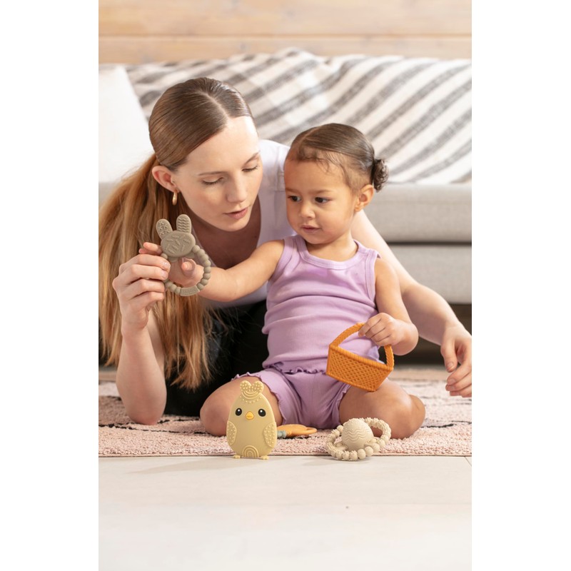 • Easter Bunny Teether Decor Inspiration: Not just for teething, these cute easter toys teething designs double as festive Easter bunny decor and essential Easter basket toys. Each silicone baby teether toy adds a charming touch to your baby's Easter basket enhancing the holiday spirit with safe, playful designs suitable for babies.