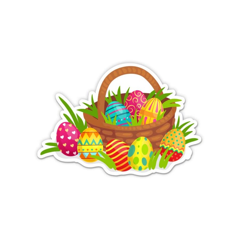 Easter Basket with Eggs Happy Easter - 5" Vinyl Sticker - for Car Laptop I-Pad - Waterproof Decal