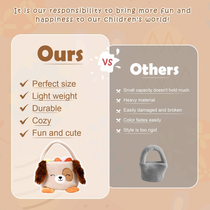 - High-quality: Our lovely Easter basket is make of high-quality fabrics.Your kids will love using our adorable fluffy gift basket for their Easter egg hunt