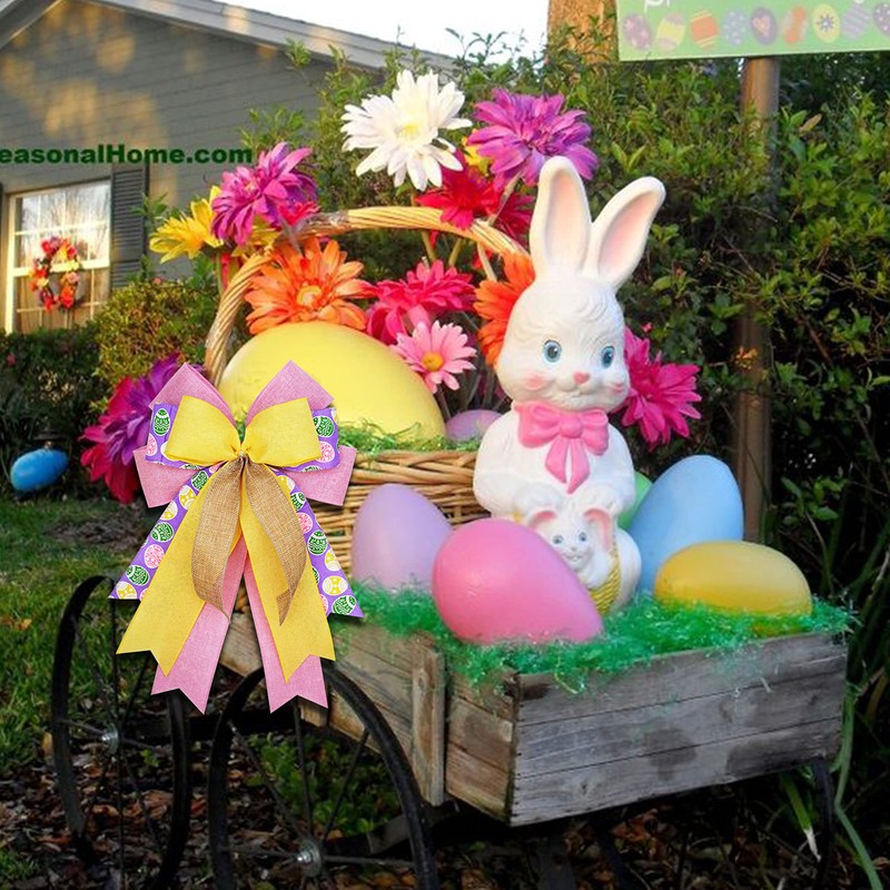 - 【Widely used】Easter spring and summer bow would look so fresh hanging attached to a wreath or an Easter basket, added to decor on a fireplace mantel or lantern, on a wall light, or a mirror. It would add an awesome touch to decorate at any special event, party or reception.