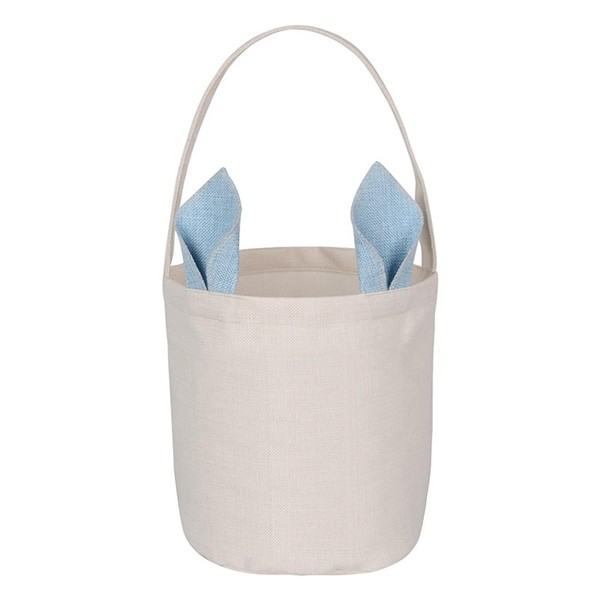 Easter Bunny Basket Canvas Cotton Easter Eggs Basket with Fluffy Ears for Easter Egg Hunts (Blue)