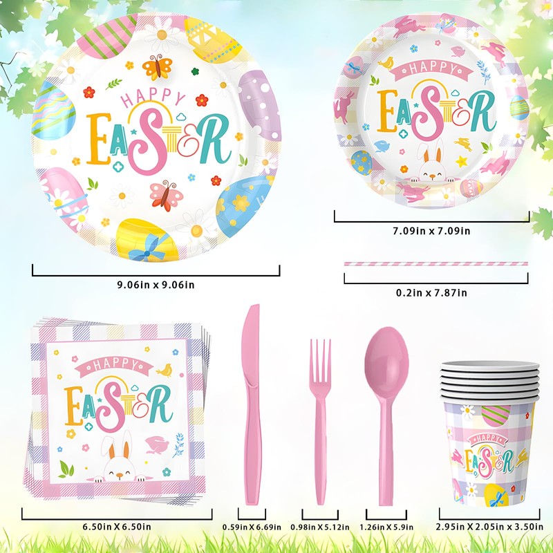 Easter Bunny Birthday Party Decorations Kit with Bunny Birthday Banner, Swirl, Latex Balloons, Cupcake Toppers, Paper Plate Cups Disposable Spoon for Rabbit Themed Birthday Party Supplies