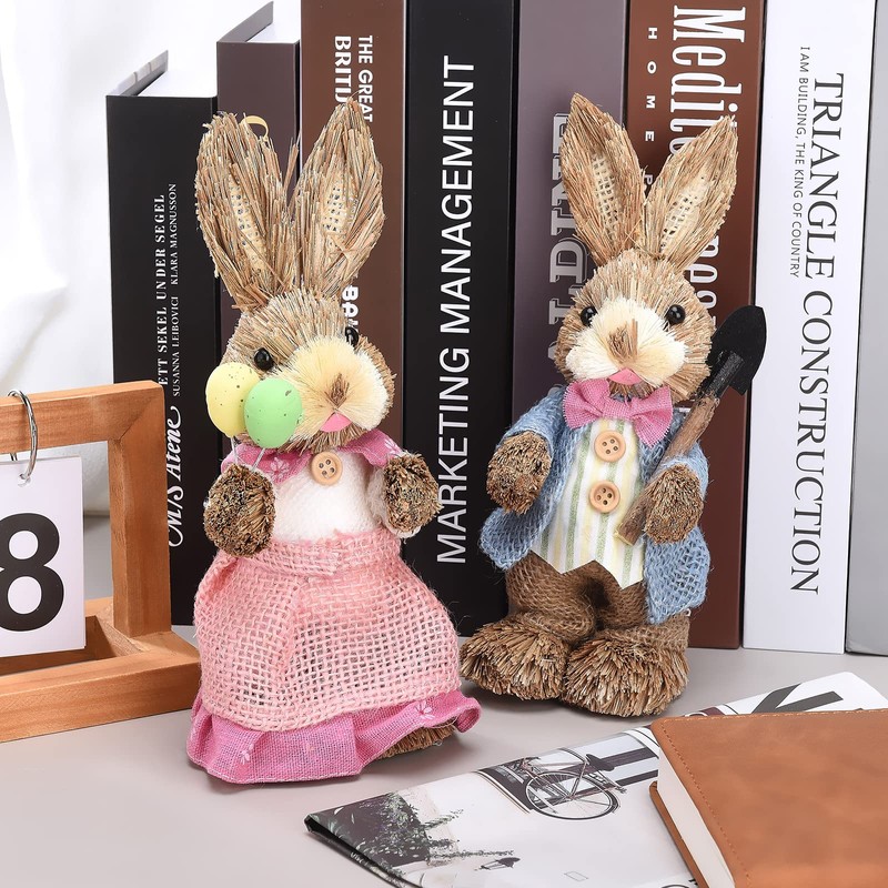 Easter Bunny Couple Rabbits Figurine,2PCS Easter Bunny Doll Easter Decorations Spring Easter Rabbit Decors