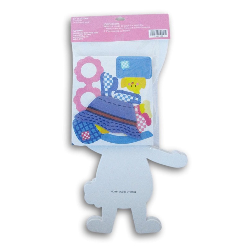 - Kit includes: 2 bodies and 12 foam stickers for decorating