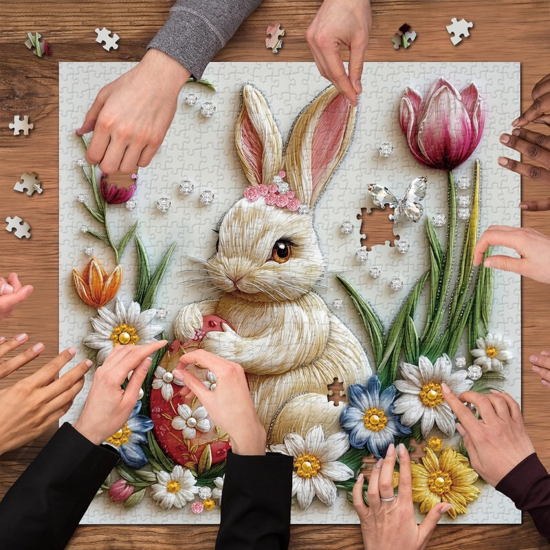 Easter Bunny Puzzle for Adults 1000 Pieces, Cute Rabbit with Spring Flowers, Butterfly and Decorative Egg Jewel Art Jigsaw Puzzle, Challenging Spring Garden Jigsaw Puzzle for Easter Lovers