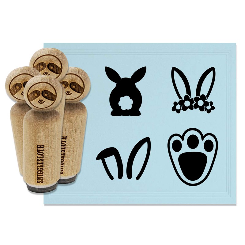 Easter Bunny Rabbit Foot Footprint Floppy Ears Rubber Stamp Set for Stamping Crafting Planners - 3/4 Inch Small
