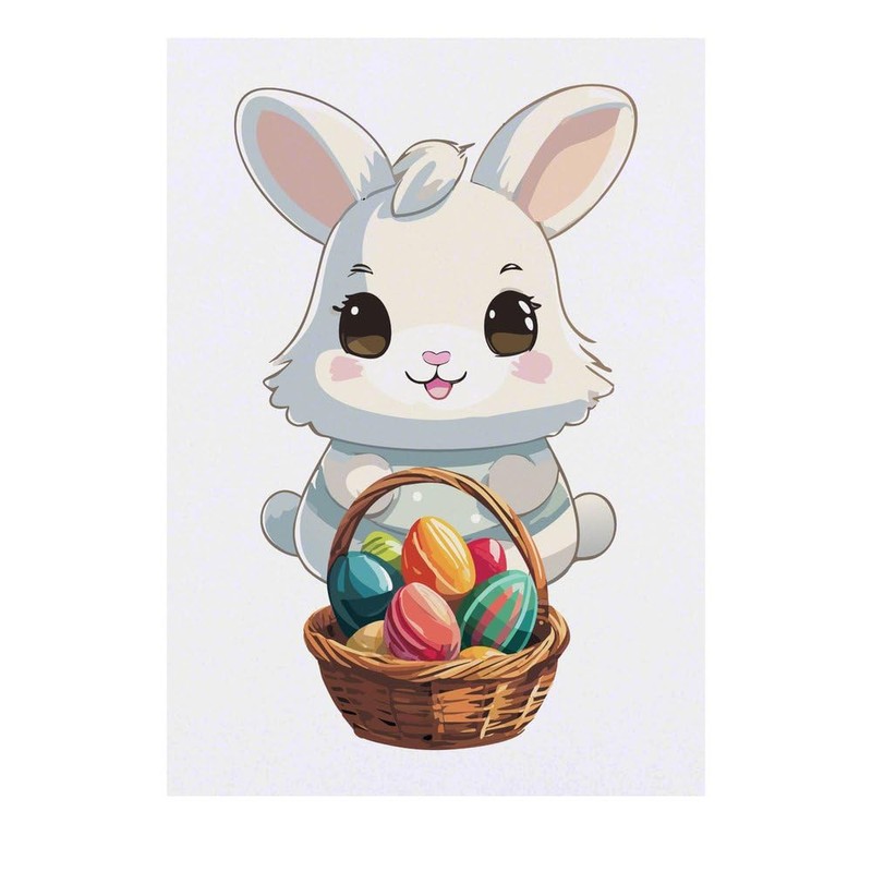 'Easter Bunny With Easter Basket Kawaii Style' Temporary Tattoo - Water Resistant, Skin-Safe, Non-Toxic Transfer (TO00070045)