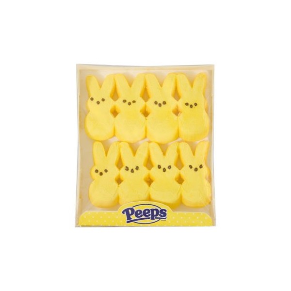 Nothing says springtime like Easter... and Peeps! Fluffy bunny-shaped marshmallows are coated in yellow sugar for a sweet treat that’s been a favorite addition to Easter baskets for decades. Enjoyed by kids (and adults) of all ages, they’re also great for gift baskets, goodie bags, fun recipes . Plus, they’re fat free. includes 1 – 8-ct. packs of Peeps yellow marshmallow bunnies.