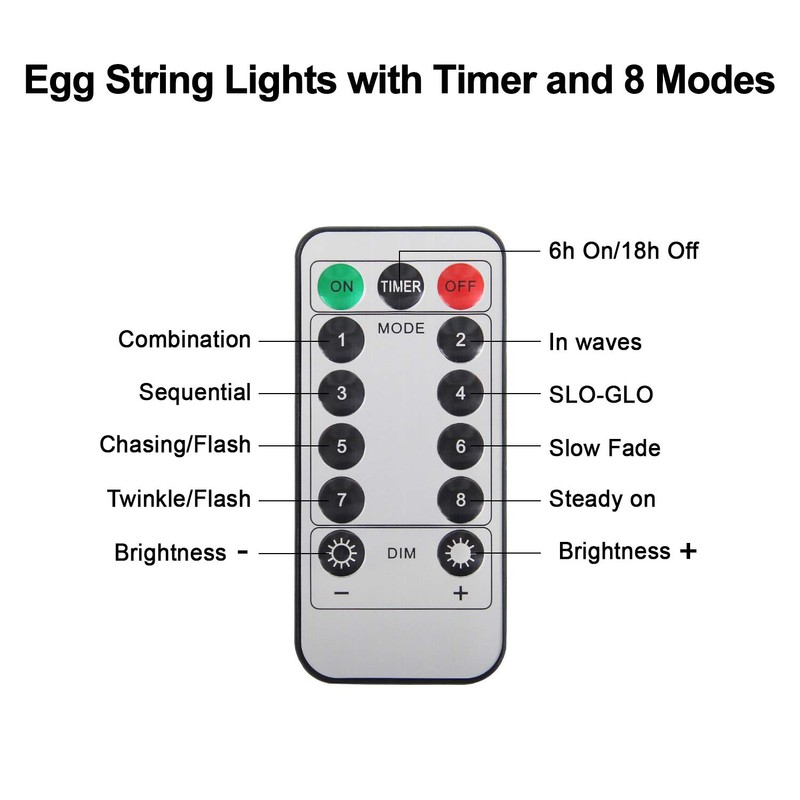- EASY TO USE - Easter egg battery operated string lights with timer, no wiring required, and not a battery eater, press the remote and set timer function to save your time. Perfect for spicing up your decor or setting the mood for Christmas, Halloween, Thanksgiving day, birthday party, great for indoor and outdoor lighting decoration.