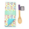 - Decorative Dish Drying Mat Set: Reverse side of drying mat is a solid aqua blue. waffle texture.