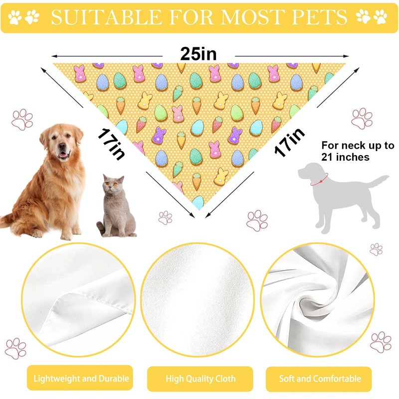 - EASTER PATTERN DESIGN: Two dog Easter bandanas feature Classic Easter colors - green & yellow and rabbit easter egg carrot pattern on both sides. Perfect pet accessories decoration to make your dogs and cats look more cute and attractive.