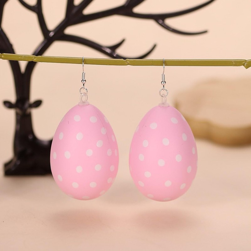 Easter Earring for Women 3D Egg Ball Earrings Dangle Easter Fleck Earring Exaggerated Big Egg Earrings Cute Funny Accessorie Jewelry (Pink)