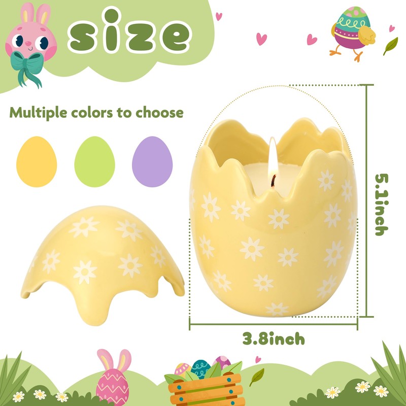 - 【Easter Egg Candle Design】Easter Egg Candles feature an egg shell shape available in multiple colors—purple, yellow, and green—allowing you to choose the perfect hue to enhance your holiday decor and add a joyful atmosphere.