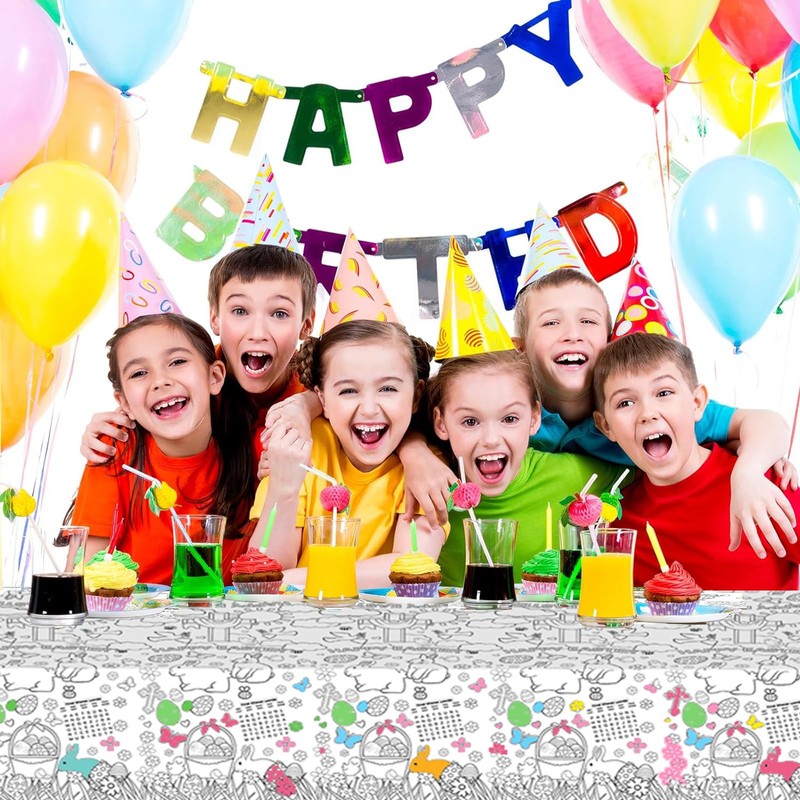 - Size: This giant colored tablecloth measures 47.2 inches(120cm)x 70.8 inches(180cm) in size. This is a custom coloring fun for the whole family! Let girls and boys decorate and color posters with different theme elements to achieve true community collaboration!