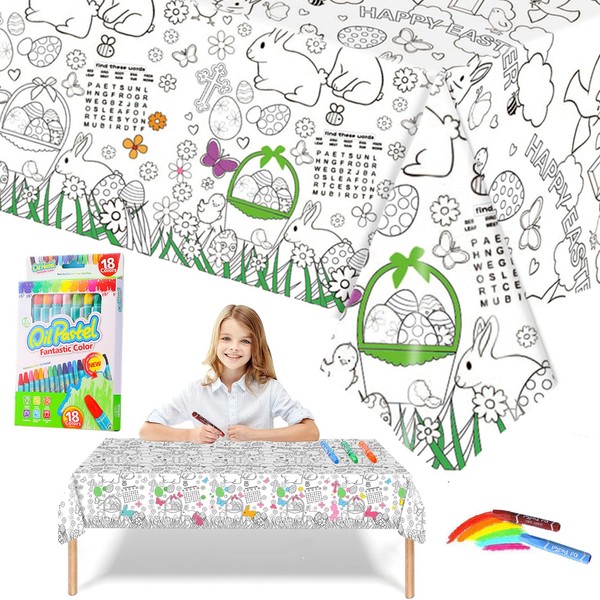 Easter Giant Colouring Table Cloths for Kids,Party Tablecloth Colouring Poster with 18 Paint Pens,47x71inch Colour in Table Cloth Drawing Paper Roll Table Cover Colouring Sheet for Kids Easter Party