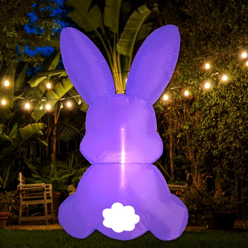 - 【APPLY TO】Bunny outdoor blow up is easy to install.Simply connect the product to a power source, and the cute rabbit decoration will automatically inflate,we have thoughtfully equipped 4 ground stakes and 2 ropes for you to better secure it