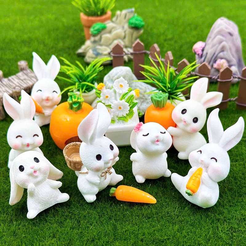 - Small Bunny Resin Ornaments: Miniature resin rabbit can be used to decorate fairy garden miniatures, aquariums, home decorations, cupcake toppers etc., to add more fun to your life