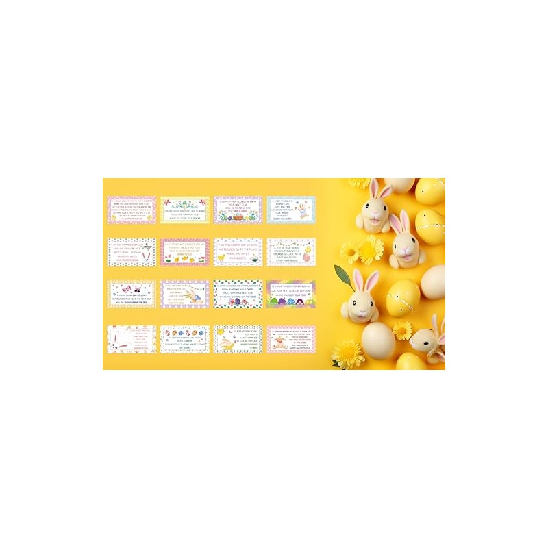 Total 16 perfect traditional Easter treasure hunt cards and 16 colourful envelopes. The game card size is 2.1x 3.5 inches, and the envelope size is 2.5x 4.0 inches.