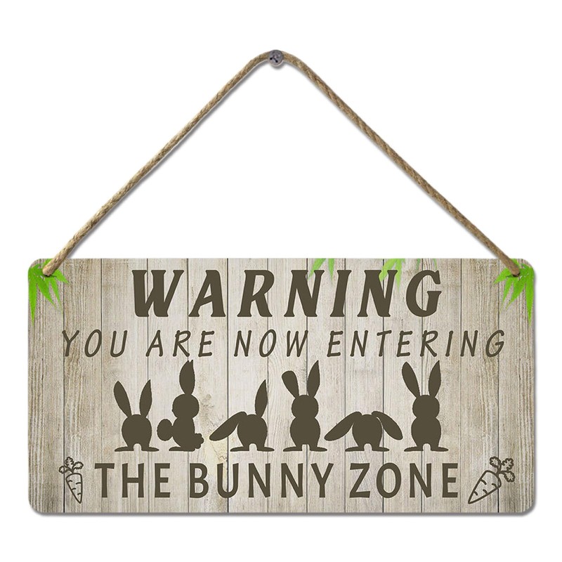 Easter Rabbit Sign Funny Bunny Wall Art Decor Rustic Bunny Wood Signs for Home Decorations Rabbit Lover Gifts for Women The Bunny Zone Sign 12x6 Inch