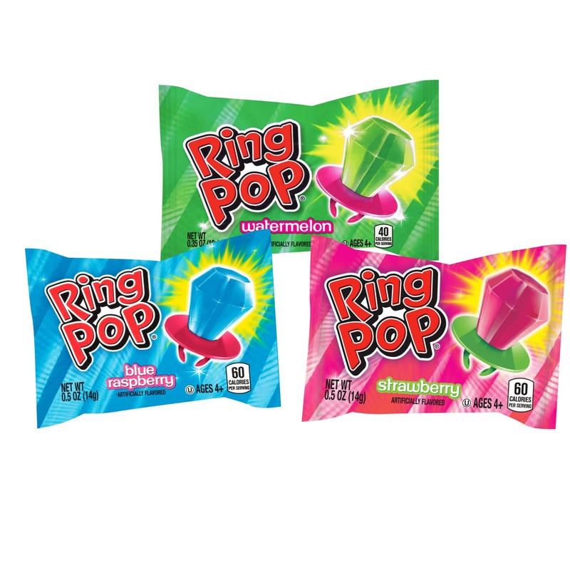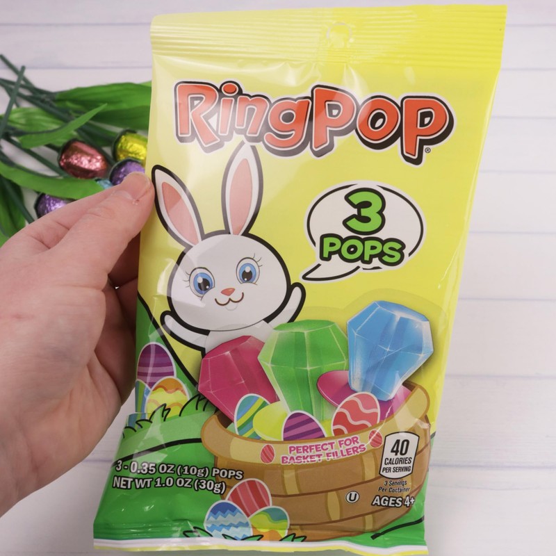- Easter-themed Ring Pops in watermelon, strawberry, and blue raspberry flavors