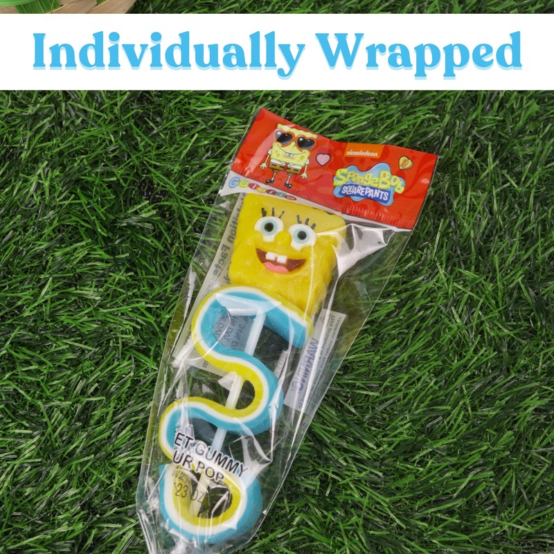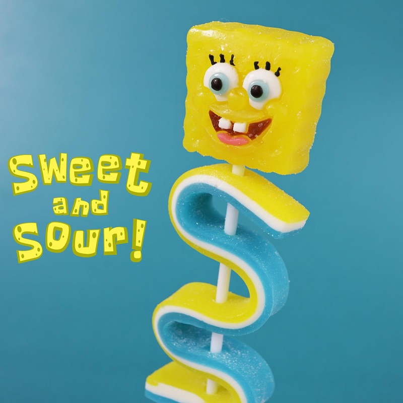 - SpongeBob gummy skewers with sweet character gummies and tangy sour belts