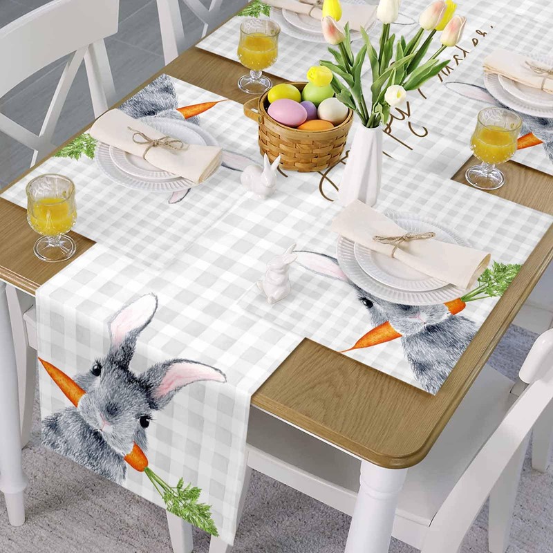 - Beautiful & Practical - Easter dinner runners with charming printed, is a star attraction of dining table, this table runner makes a great table decor, Bring you more Easter Day atmosphere and make life more interesting! A fun and thoughtfully designed bunny pattern will liven up your dining table and bring a smile to the faces of your family and friends.