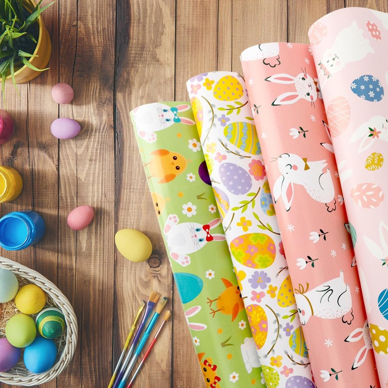 - Easy to Store: Our easter wrapping paper sheets, unlike traditional roll wrapping paper, does not roll back, ensuring a perfect fold every time. Neatly folded and compact enough to keep until the next holiday. Great for craft projects, tablecloths, DIY decor and other artistic inspiration