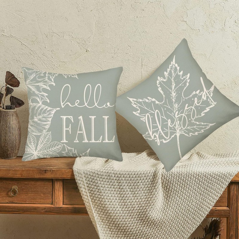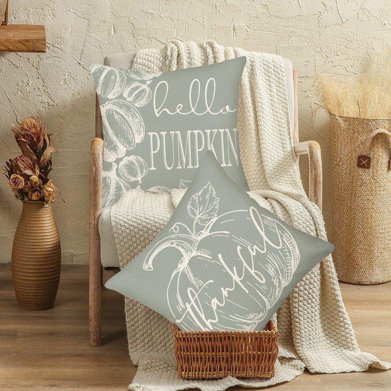 Easternproject Autumn Decor Pumpkin Pillow Covers Set of 4 Maple Leaves Pumpkins Fall Decorations for Home Throw Pillow Cases Blessed Thankful Harvest 18x18 Inch Cushion Cover Cotton Linen, Cyan
